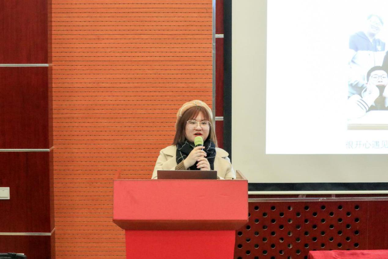 分团委员工会指导老师梁晶晶老师首先发言。她对分团委员工会所有成员这一个学期的努力与付出表示感谢,并对员工会的美好未来充满着期待。她希望员工会的每一位成员都能贯彻落实“自我管理,自我教育,服务他人”的优良作风,做一个胸怀理想,心系同学的优秀员工会成员。
