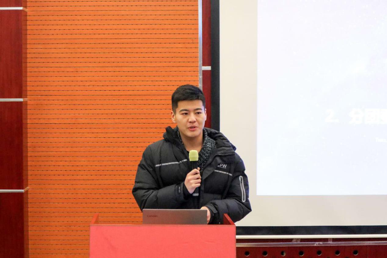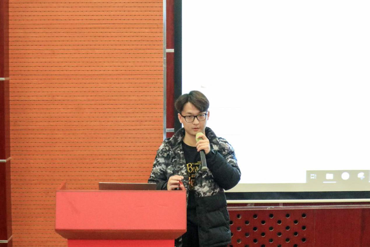 然后是外联部部长贾笑杰发言。外联部在这个学期为员工会拉到了大量赞助,并且为员工会的部分活动提供了资金、奖品以及场地支持。作为员工会的资金来源,外联部可谓是员工会不可或缺的一部分。最后他对各个部门对外联部工作的配合表示了衷心的感谢。