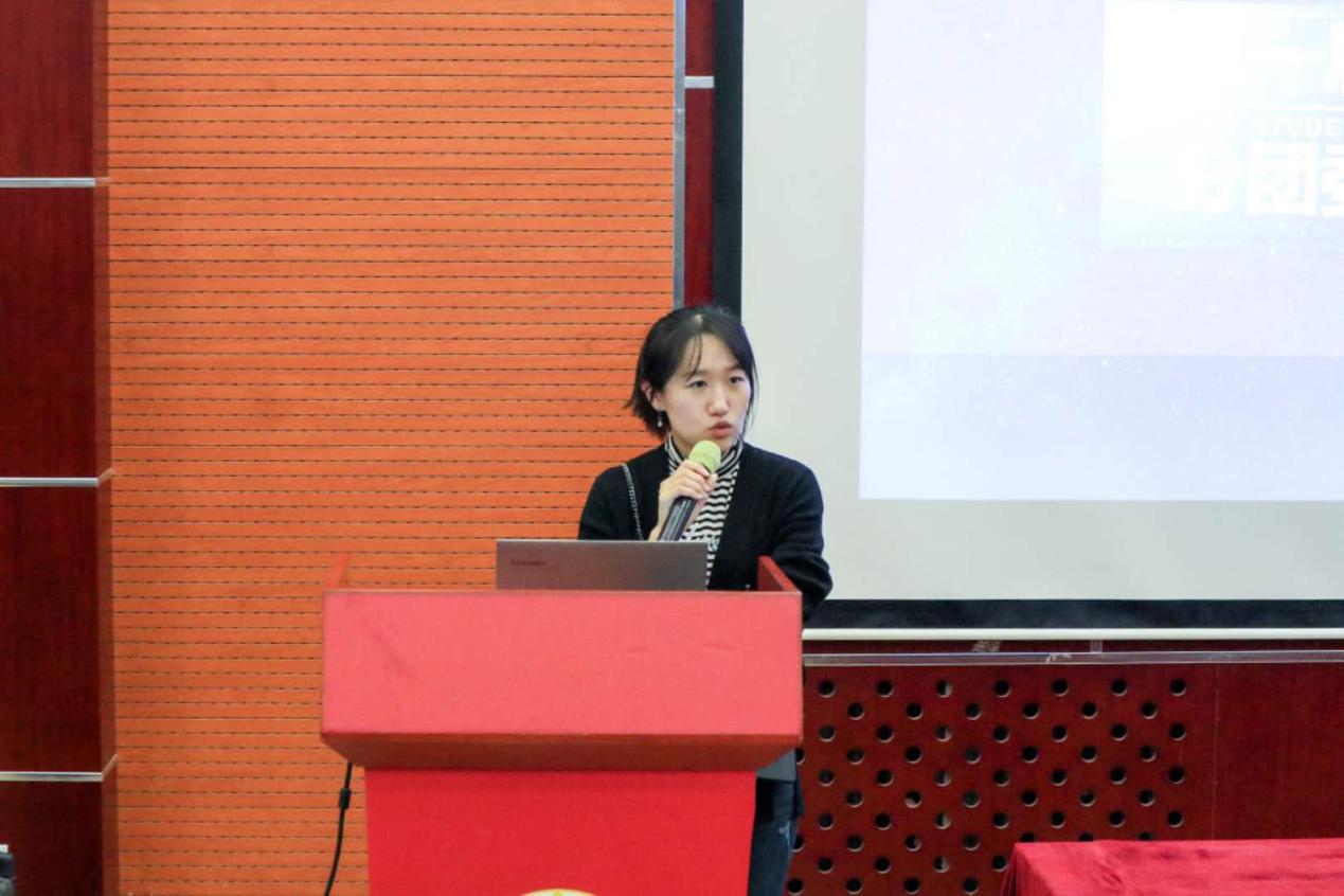 接下来是组织部部长葛佳妮上台发言,她对部门的团务整理工作,“好书伴成长”活动以及志愿北京注册活动进行了总结。同时,她还曾带领部门成员参加校级知识竞赛,展现了组织部的积极作风。