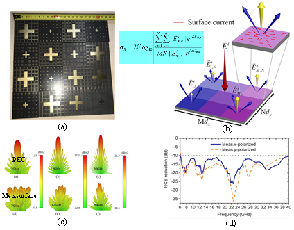 (a)超表面隐身样件(b)多波相消干涉与二次相消干涉技术机理