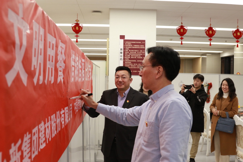 傍晚,在北新食堂举行了“节俭养德 文明用餐 惜粮惜福光盘有我”教育活动,也是公司“新生引航工程”的重要一项。在刘剑波经理和王兵书记的带领下,师生们在横幅上郑重签下自己的名字,坚定节约粮食、以身作则、光盘有我的信念。