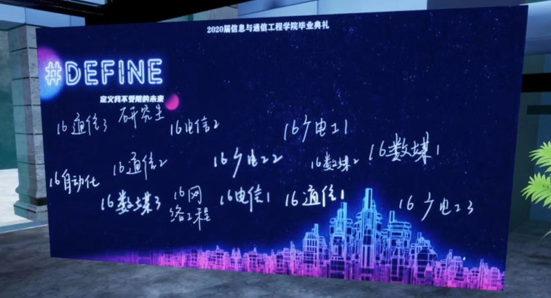 虚拟红毯仪式采用了3D可交互虚拟仿真技术,由谈球吧的毕业生和在校生联合设计完成。在公司实验中心骆新全老师的指导下,利用计算机三维动画技术对综合楼和中传礼堂等校园场景进行模型构建,通过不同视角的灵活切换,让毕业生在屏幕前也能体验红毯仪式和中传礼堂的毕晚氛围,凸显传媒工科生的毕晚特色。