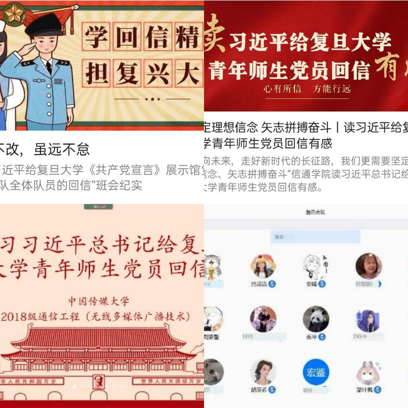 此外,部分班级通过班级微信公众号平台发布学习“习近平给复旦大学《共产党宣言》展示馆党员志愿服务队全体队员的回信”推送,向更多同学传播回信精神。