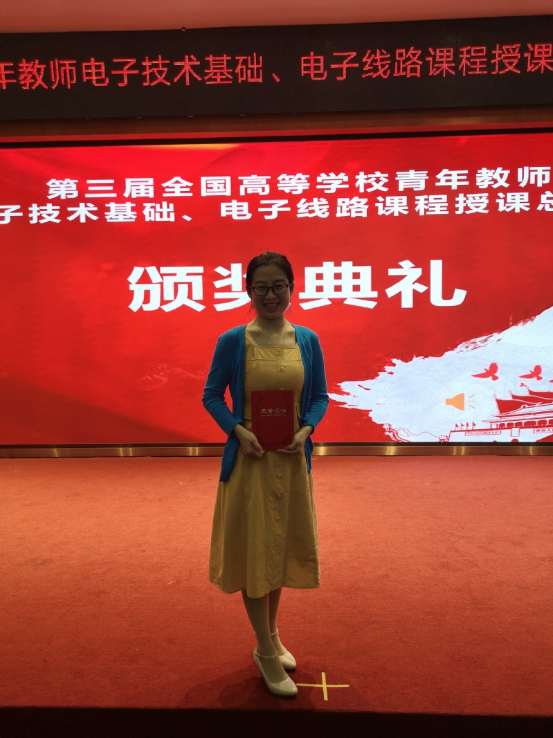 李彬老师参加总决赛的授课课程为《数字电路与逻辑设计》,她以扎实的教学功底、出色的现场发挥,获得了评委的一致好评,获得了全国总决赛二等奖的好成绩。李彬老师多年潜心教书育人,作为公司教学骨干力量,曾获得北京高校第十一届青年教师教学基本功比赛工科A组三等奖、谈球吧网页版登录入口第十届青年教师教学基本功比赛一等奖等奖项与“中央广播电视总台”优秀班主任等称号。