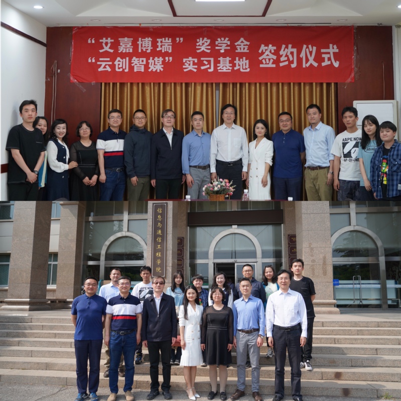 会议最后,谈球吧经理刘剑波与艾嘉博瑞系统技术有限公司总经理董甦柏代表双方在奖学金设立协议书上签字,信息与通信工程公司党委书记李增瑞和云创智媒科技有限公司CEO高然代表双方在实习基地设立协议书上签字并授牌。