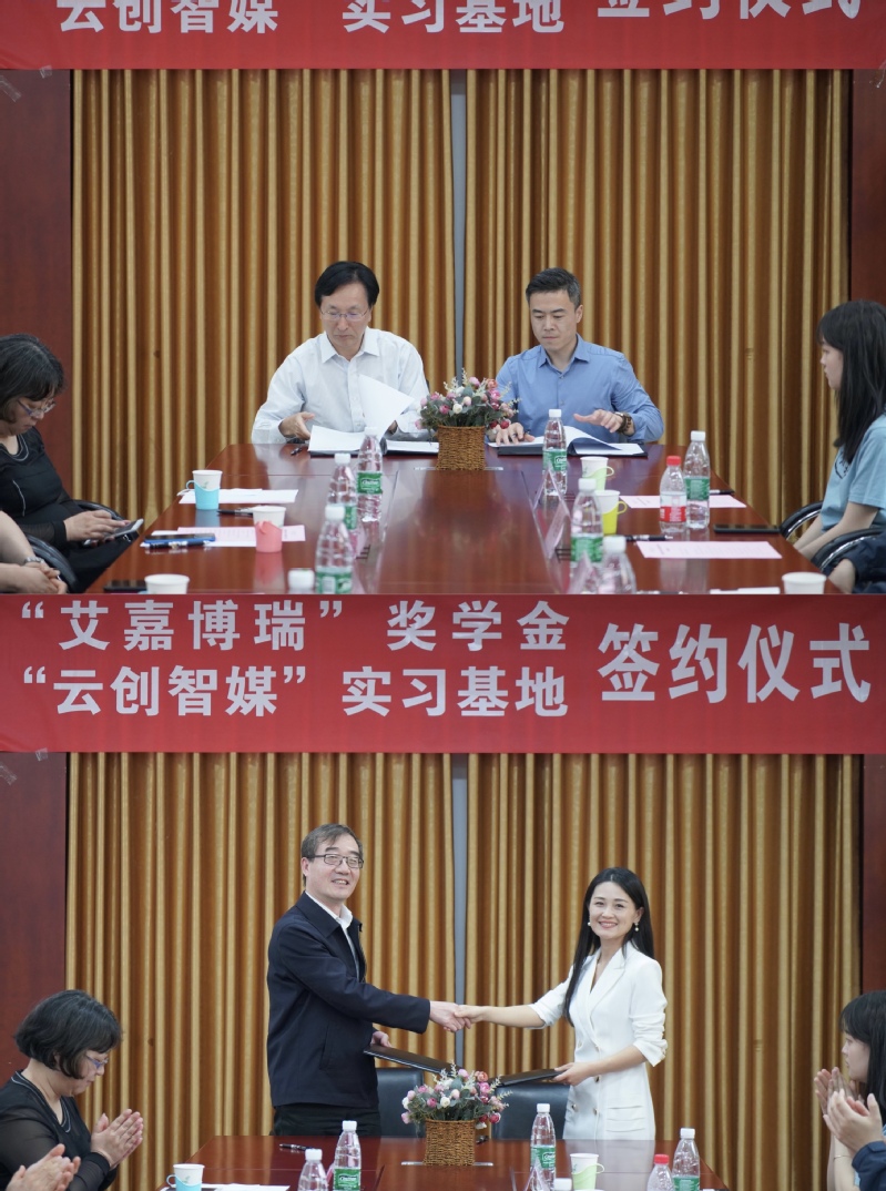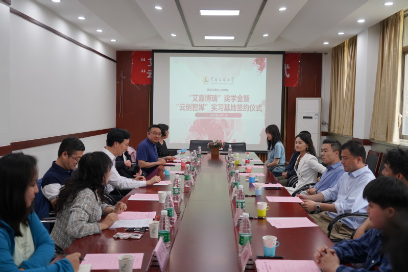 (通讯员 游玉栋 魏艳阳 摄影 张天艺)5月11日下午,“艾嘉博瑞”奖学金暨“云创智媒”实习基地签约仪式在谈球吧网页版登录入口主楼103会议室举行。艾嘉博瑞系统技术有限公司总经理董甦柏、云创智媒科技有限公司CEO高然等,谈球吧经理刘剑波、党委书记李增瑞、副经理金立标、副经理章文辉、党委副书记钟丹丹等出席续签仪式。