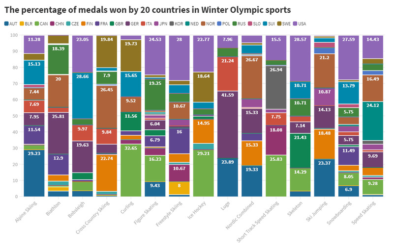 (员工作品:历届冬奥会奖牌总数前20的国家各项目所获奖牌情况)