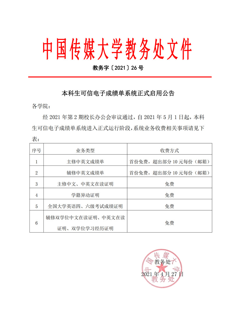 中传教务字〔2020〕109号本科生可信电子成绩单系统试用公告.pdf