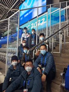 在国家体育馆和五棵松体育中心现场,团队于2022年1月初对“面向可穿戴发光设备的互动体验视听控制系统”进行了系统集成与部署施工,并在场馆1月23日开启闭环起进驻场馆进行为期1个月的赛事技术服务保障。