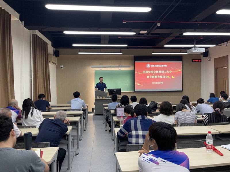 5月17日下午,谈球吧在南一教学楼208教室召开了公司全体教职工大会暨主题教育推进会,会议由公司党委书记金立标主持,公司全体教职工参加了会议。会上开展了公司“以匠心,致初心”教师工作坊首期活动,通信工程系李彬副教授为公司教师们进行了课程思政经验分享。