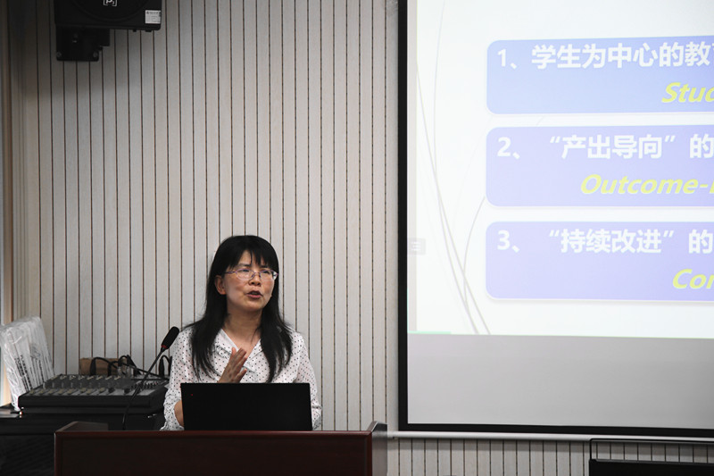 刘美红教授结合工程认证审核工作详细讲解了认证的三大核心内容——以员工为中心的理念、产出导向的教育和持续改进的机制,阐述了认证标准要求和自评报告撰写的注意事项。