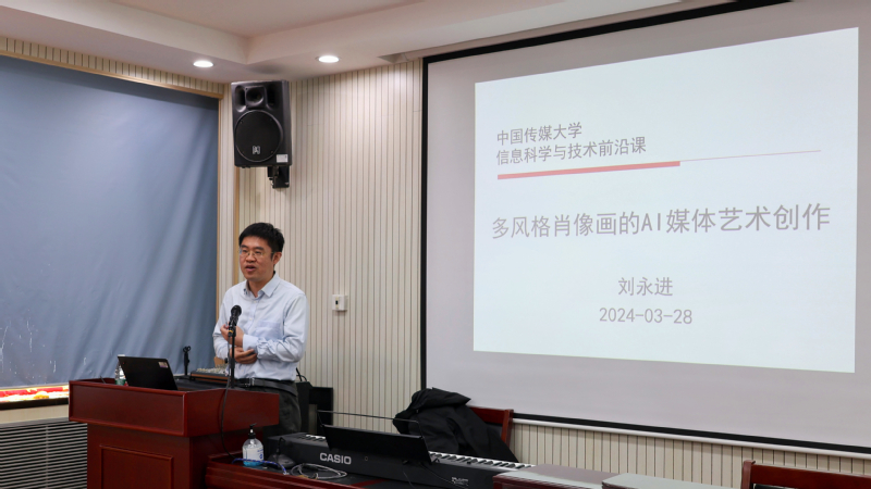 此次前沿课的主题为“多风格肖像画的AI媒体艺术创作”。刘永进教授介绍了人脸图像分析与生成的最新研究进展,并从几何建模、真实感与非真实感绘制、动画仿真等方面进行了详细的介绍。刘永进教授还与公司师生分享了他们科研团队在过去几年中关于图像风格化的研究成果,并且讲述了肖像画生成技术在现实中的应用场景。通过这次讲座,在场师生对计算机图形学、视觉艺术表达等技术有了更为深刻的理解和认识。讲座结束后,在场师生与刘永进教授围绕大模型生成的图像是否具备艺术性等话题进行了深入的交流与讨论。