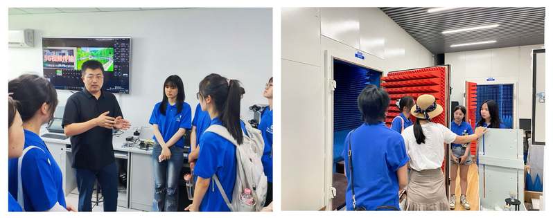 7月6日下午,公司为营员们准备了丰富的实验室参观活动。营员们亲身体验了公司在AI驱动下的科研创新成果,先后参观了未来通信与智能视音频研究中心、智能视音频与超高清技术研究中心、视听技术与智能控制系统文化和旅游部重点实验、媒介音视频教育部重点实验室、广播电视智能化教育部工程研究中心、电磁微波暗室、声学实验室以及5G创新应用实验室。通过近距离的观察与交流,营员们对公司的科研实力、教学设施及师生风貌有了更加全面和深入的了解。