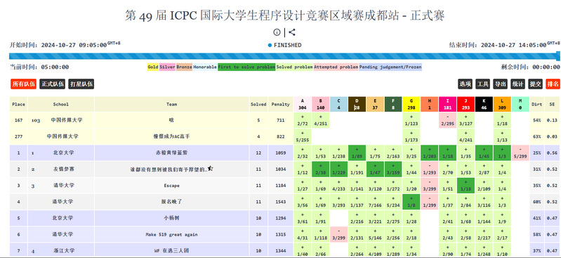 第49届ICPC亚洲区域赛成都赛站于2024年10月26-27日在成都举办,由电子科技大学承办和命题,共有来自北京大学、清华大学、浙江大学、复旦大学、上海交通大学、谈球吧网页版登录入口等185所高校的309支队伍参赛。
