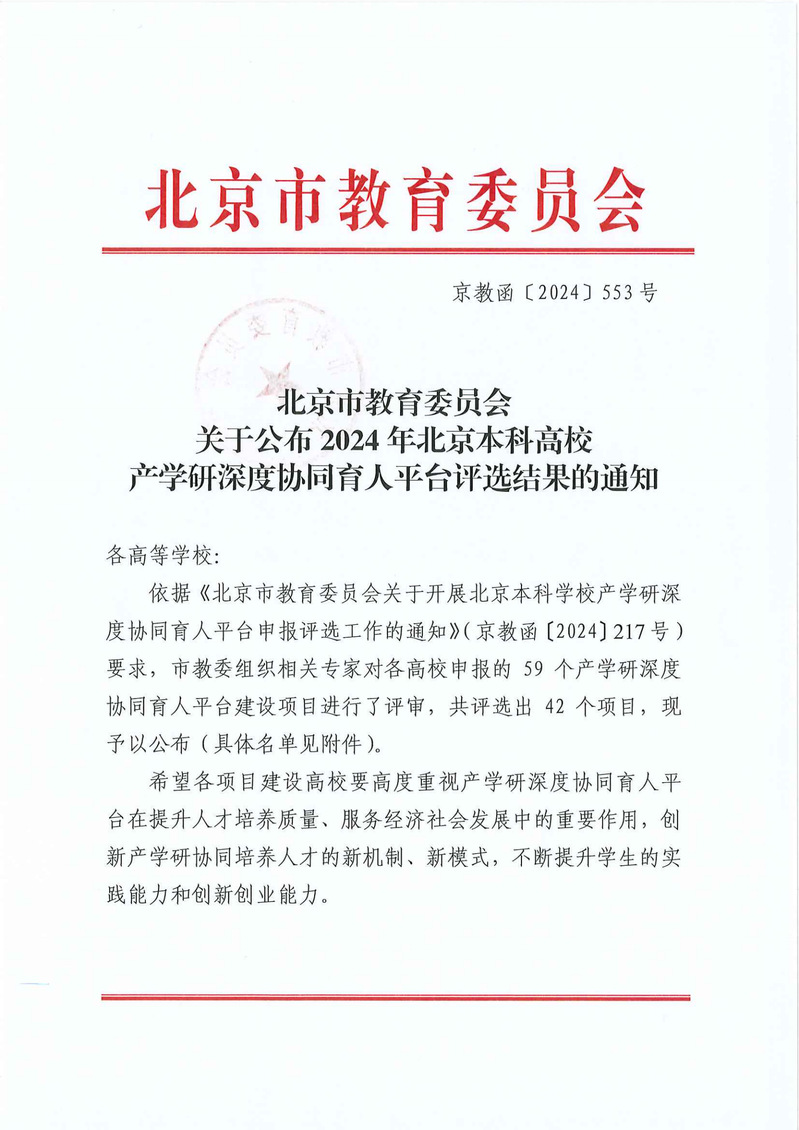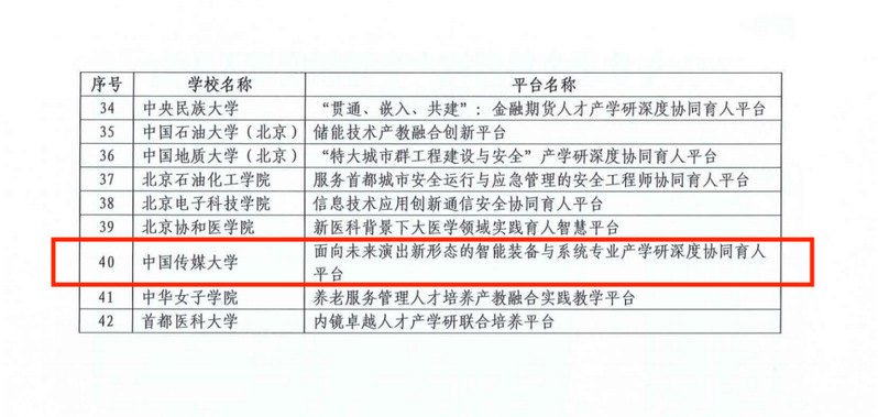 2024年11月6日,北京市教育委员会公布了2024年北京本科高校产学研深度协同育人平台评选结果,市教委组织相关专家对各高校申报的59个产学研深度协同育人平台建设项目进行了评审,共评选出42个项目,谈球吧网页版登录入口“面向未来演出新形态的智能装备与系统专业产学研深度协同育人平台”成功入选。