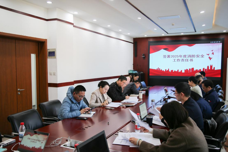 会前,金立标经理、钟丹丹书记与各系(中心、办公室)负责人签署2025年度校园安全稳定工作任务书、消防安全工作责任书。