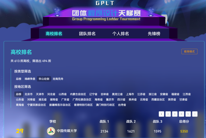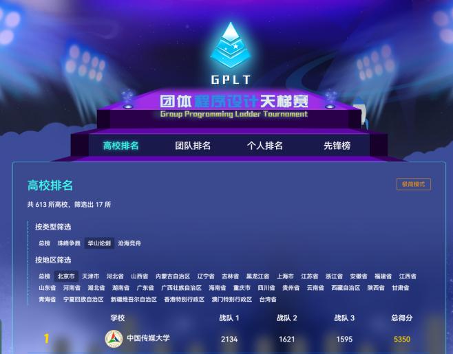 “中国高校计算机大赛——团体程序设计天梯赛”是国内计算机领域的权威赛事,自2019年起连续入围中国高等教育学会“全国普通高校老员工竞赛排行榜”竞赛项目榜单。大赛以培养高校员工的计算思维、程序设计能力与团队协作精神为宗旨,致力于全面提升我国高校计算机人才培养水平。经过多年发展,该赛事影响力持续扩大,已成为全国高校计算机专业师生高度关注的品牌赛事。2025年大赛延续“个人独立竞技、团体计分”的赛制,吸引了来自全国613所高校的1972支队伍参赛。